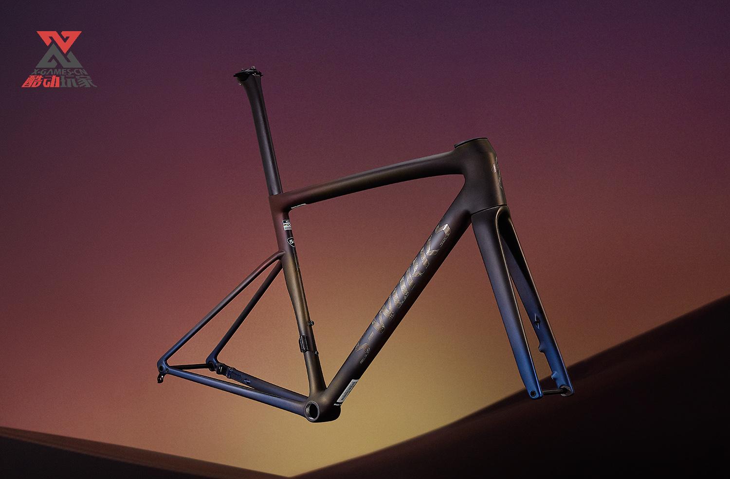 车架上彼此融合又各自独立的低明度红、金、蓝色,寓意龙所具有的超自然能力。在车头闪电标识和下管S-Works标识上,覆以带有随机花纹的暗金色,仿佛巨龙若隐若现的金鳞。带有玄学色彩的涂装下面,又是源自于科学和经验的力量,历经8代、20余年的持续研发,将气动、轻盈、刚性和顺应性以一种意想不到的方式结合起来,让神龙鳞甲成为你胜利的图腾,引领你品尝速度的甜美气息。