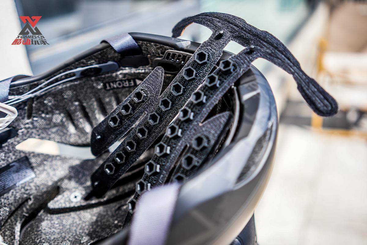 全新的气动头盔 PMT Kora 同样是2024年主打的产品,Kora头盔内置24个独立的安全气囊单元,它们按特殊角度排布,这也是PMT独有自研全新的“TOTAL PROTECTION”专利技术,设计了分四列排布的24个六边形“安全气囊”通过6个锚点和内衬衔接到一起形成缓冲作用的覆盖面。这完全有别于MIPS的安全防护系统的设计思路。在受到外部冲力的时候,这些小气囊可以更好的起到缓冲的作用,让头部最大程度减少受到冲击的效果。