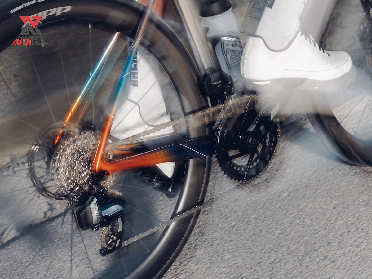 2、XPLR 专属后拨结构采用 Full Mount 安装,摒弃传统尾钩接口,提升刚性与稳定性。