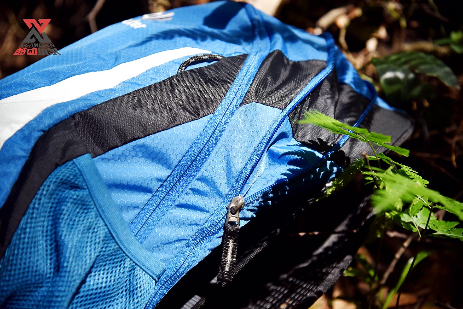 背包的主色蓝色面料更有来头,这是一种重量更轻的新型面料,由100D纱线组成,我们称之为HEXLITE 100面料,它的六边形防磨损设计特别增加了其强度以及技术感。目前还没有背着它骑车摔过,不过通过目测和手感,背包的强度肯定不会差。两种面料里面都就加有up涂层,使背包拥有很好的防生活泼水功能。