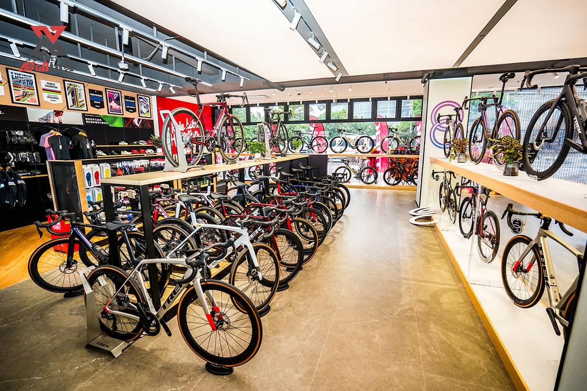 TREK 黄龙旗舰店采用最新的装修风格,营业面积近450平米。店内陈列了众多MADONE旗舰车型,规模在全球首屈一指。店内主要成员在杭州经营TREK品牌已有11年,对于新老款车型了如指掌,能很好地为车友答疑解惑。店里还有多位资深技师为客户提供后期的维修保养保障。本店不仅展示TREK及BONTRAGER最新产品供自行车爱好者和运动粉丝欣赏,更为追求极致的车友提供业内独特的PROJECT ONE个性定制服务,可以全面了解TREK自行车的历史文化,深入体验最新科技产品。