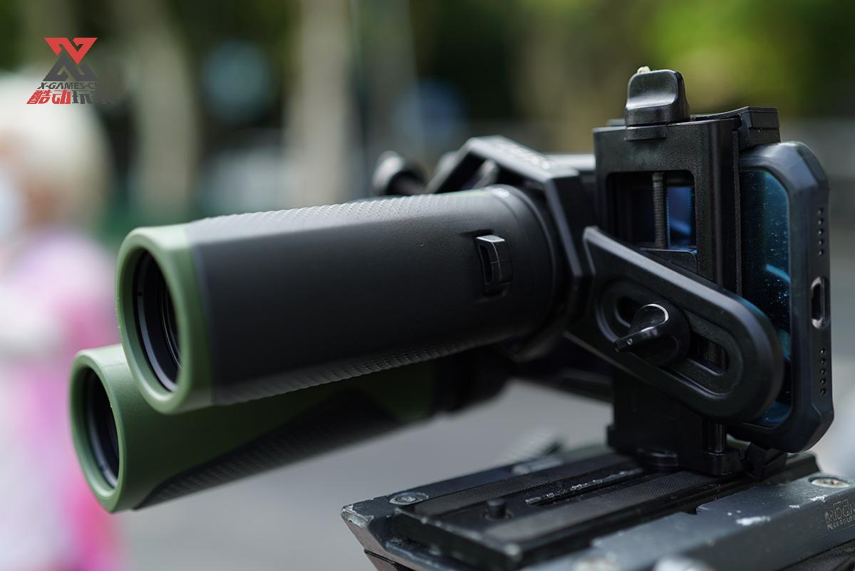 利用蔡司提供的手机支架,将手机固定在望远镜后再行固定在三脚架上。因为10倍率用手机摄像头的焦段来计算相当于280毫米以上焦距了,如果没有三脚架固定,会非常抖。