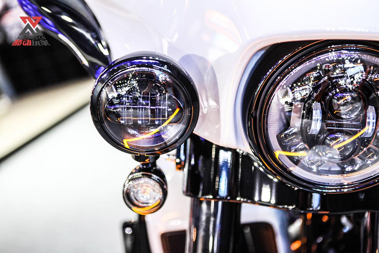 哈雷的这款ULTRA LIMITED 旗舰滑翔版本头灯造型十分特别。