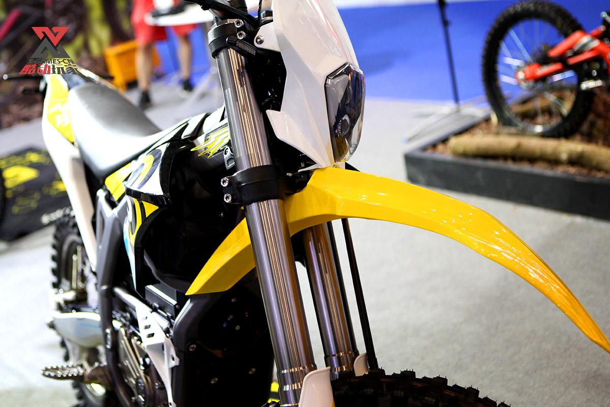 虬龙科技在本次展会上展示了他们的进阶产品“暴蜂MX“。这是一款以专业越野用途为目的的电动摩托车。从产品外观来看和汽油驱动的越野摩托车似乎并无两样。