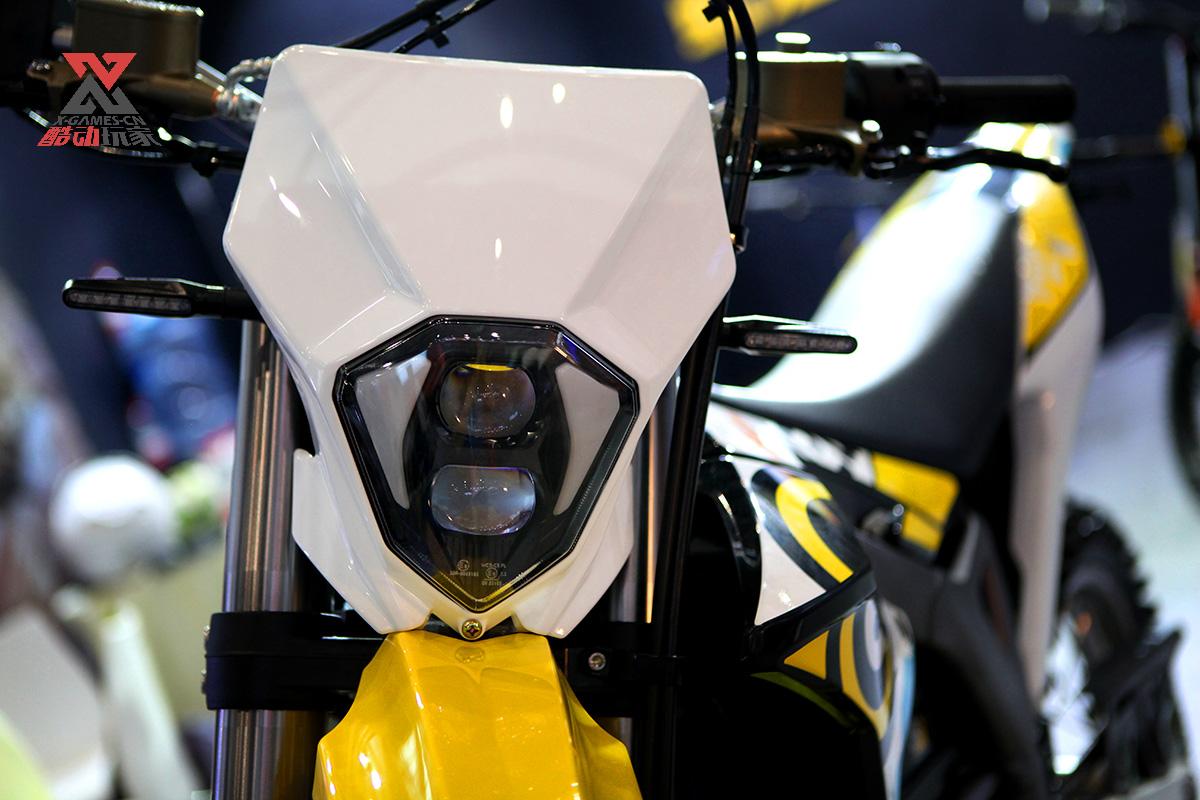 现场展示的这台暴蜂MX是非场地版本的型号,所以具备车灯。整个车头和车灯的造型很像一个蜜蜂的头部。