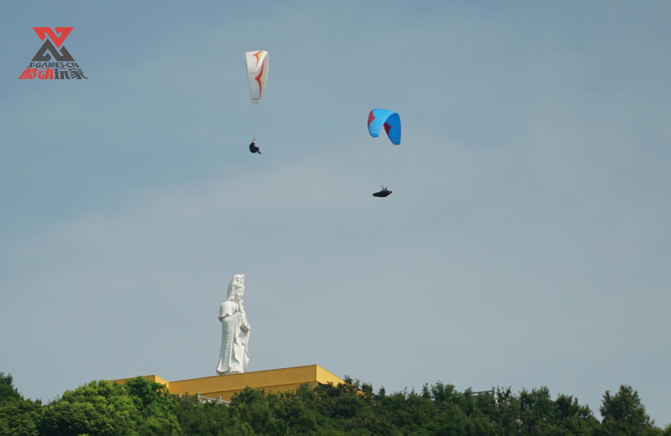 在尖山的山顶起飞后,飞跃位于半山的观音院,远眺钱塘江的入海口,体会在山中林木尖稍掠影而过的刺激。如果气流条件允许,一个资深的滑翔伞飞行员可以在空中滑翔好几个小时。真的犹如开题图片的雄鹰一样,可以随着气流翱翔于天际。