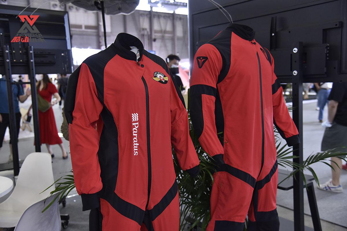 跳伞因为是高空运动,所以高空跳伞都有专用的伞服,亚务跳伞自己也设计和制造专业的跳伞服装。连体式的造型和束紧的袖口,颇有点宇航员内舱服装的感觉。
