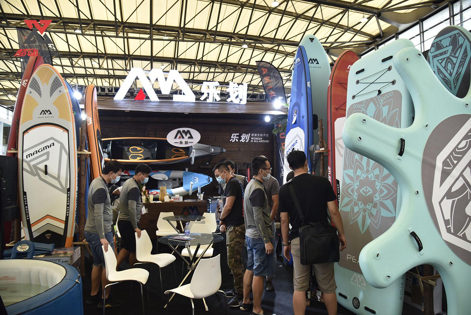 乐华是国内专业的桨板品牌商,具有丰富的产品线。包含了静水板、白水板、海洋板、动作板、亲水娱乐版、漂流艇、单面桨等各类产品。ISPO展位看起来也非常壮观。